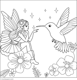 Dive into the magical world of fairies sparkling in shimmering colors. Bring your own fairy tale to life, delving kids into the enchanting realm of nature through attractive fairy coloring pages. Monkey Pen presents an alluring charm of nature in a fun environment featuring beautiful fairy illustrations in woods, blooming gardens and mushrooms. These pages are an escape into the outdoors and engross mindfulness of the journey for hours.