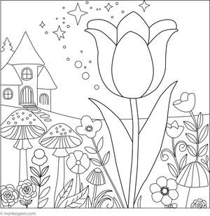 Our Tulip Coloring Book captures the joyful spirit of spring in a delightful collection of illustrations—featuring tulips in pots, blooming gardens, elegant bouquets, scenic meadows, butterfly-filled fields, and even whimsical fairyland landscapes.