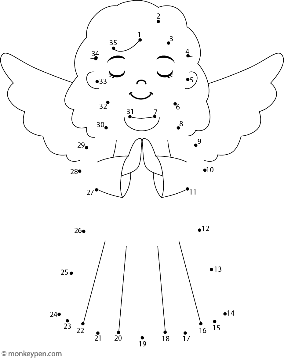 Angel – Free Printable Dot-to-Dot Worksheet for Kids