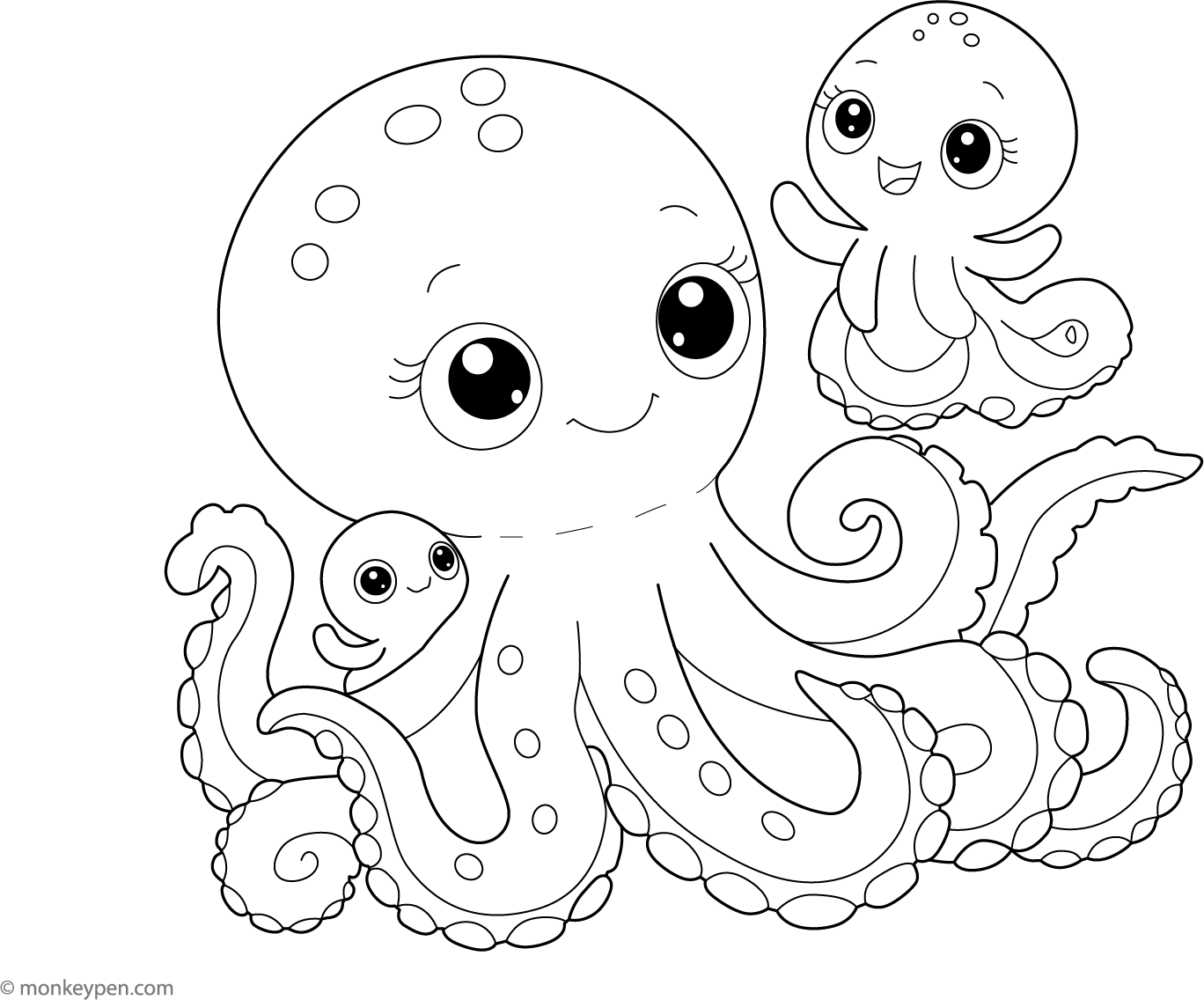 Baby Octopus and Mom | Free Coloring Pages