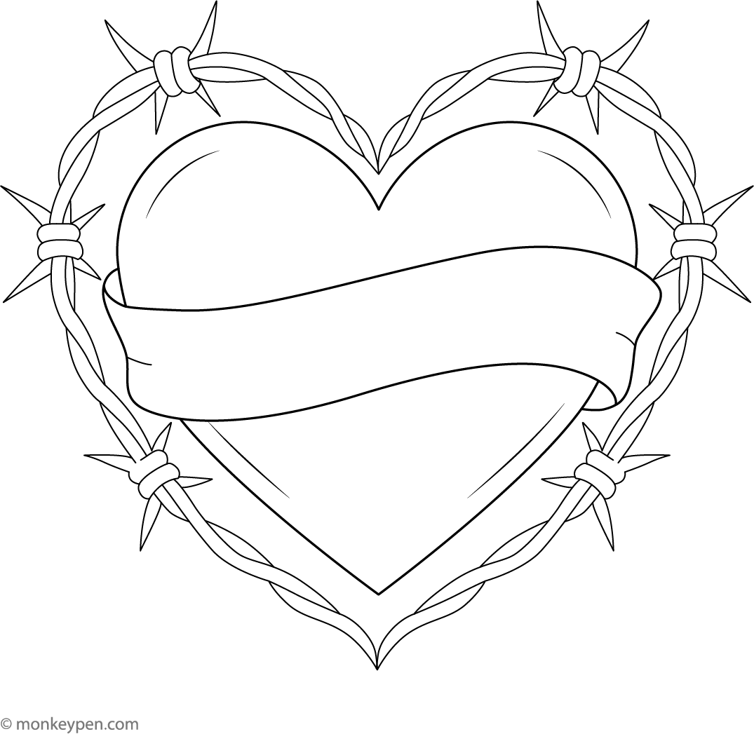 Barbed Wire Heart Tattoo | Free Coloring Pages