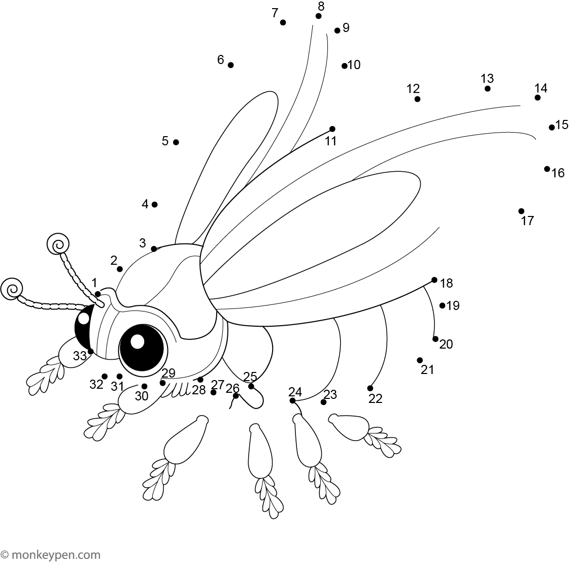 This beetle dot-to-dot worksheet features a tiny insect in focus. Connecting the numbered dots reveals a cartoon beetle with a rounded body and legs. Children can then add color using greens, blacks, or imaginative patterns to enhance their creativity. The activity supports number sequencing, attention to detail, and artistic expression while exploring insect life. The clear outline is appropriate for preschoolers, and older children can extend the scene with leaves or flowers. Suitable for classroom environment, nature studies, or at-home activities, this worksheet encourages curiosity and artistic exploration.