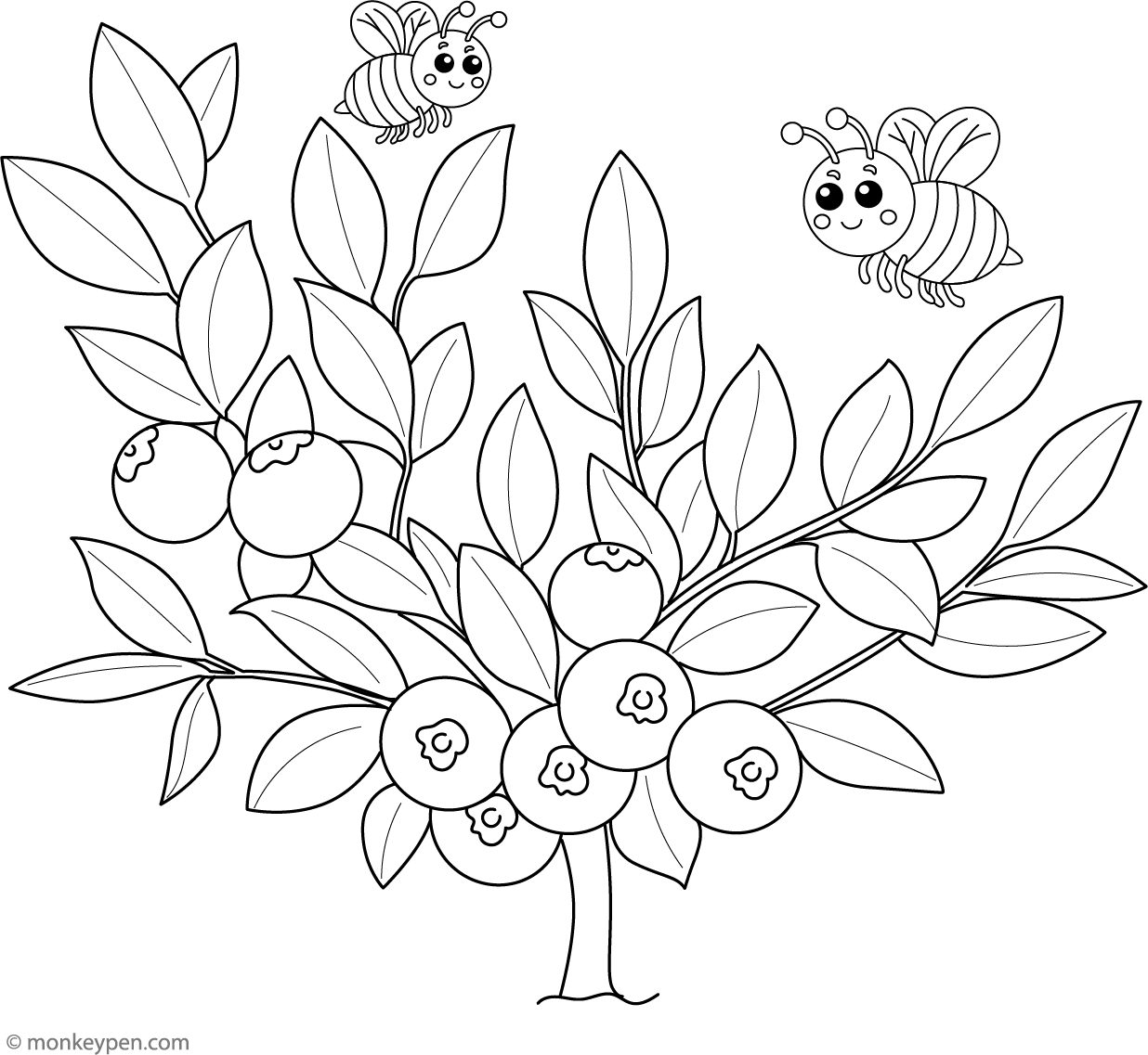 This delightful coloring page showcases a bee happily exploring a juicy blueberry. Children can color the bee’s stripes and wings and choose vibrant shades for the blueberry. The scene introduces children to aspects of nature and pollination while keeping the activity simple and enjoyable. With clear outlines and accessible shapes, it is suitable for early learners and more experienced young artists. Kids can add flowers, grass, or additional berries to personalize their artwork.