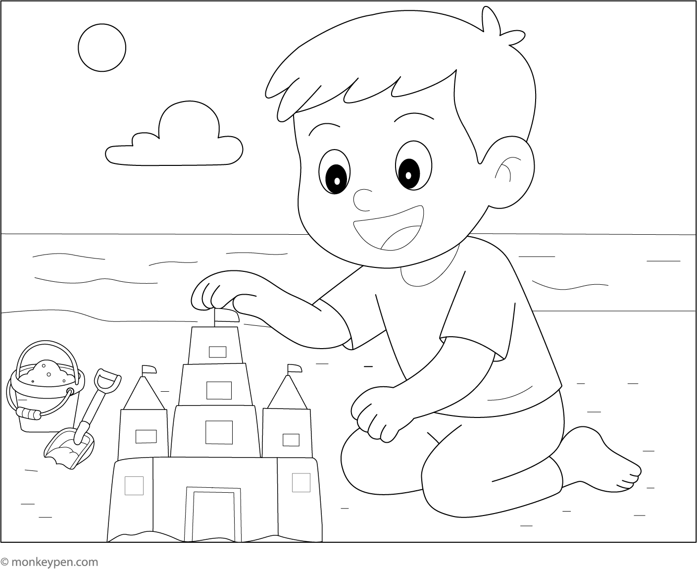 Boy Building a Sandcastle | Free Coloring Pages