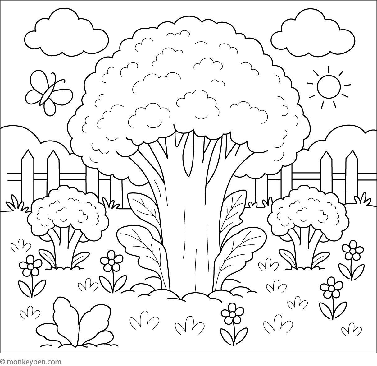Broccoli Growing in a Garden | Free Coloring Pages