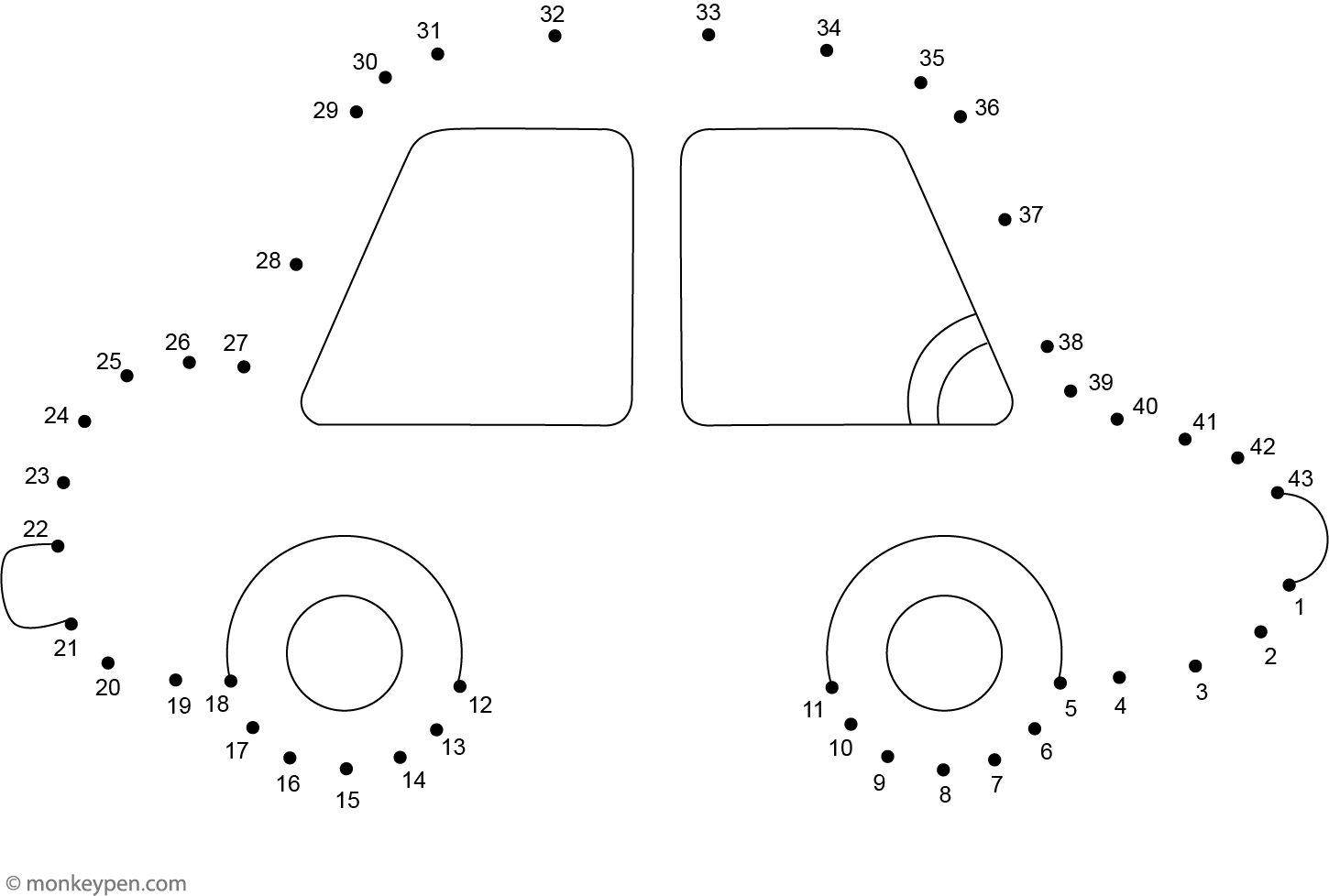 Cartoon Car – Dot to Dot Free Printable Kids Worksheet
