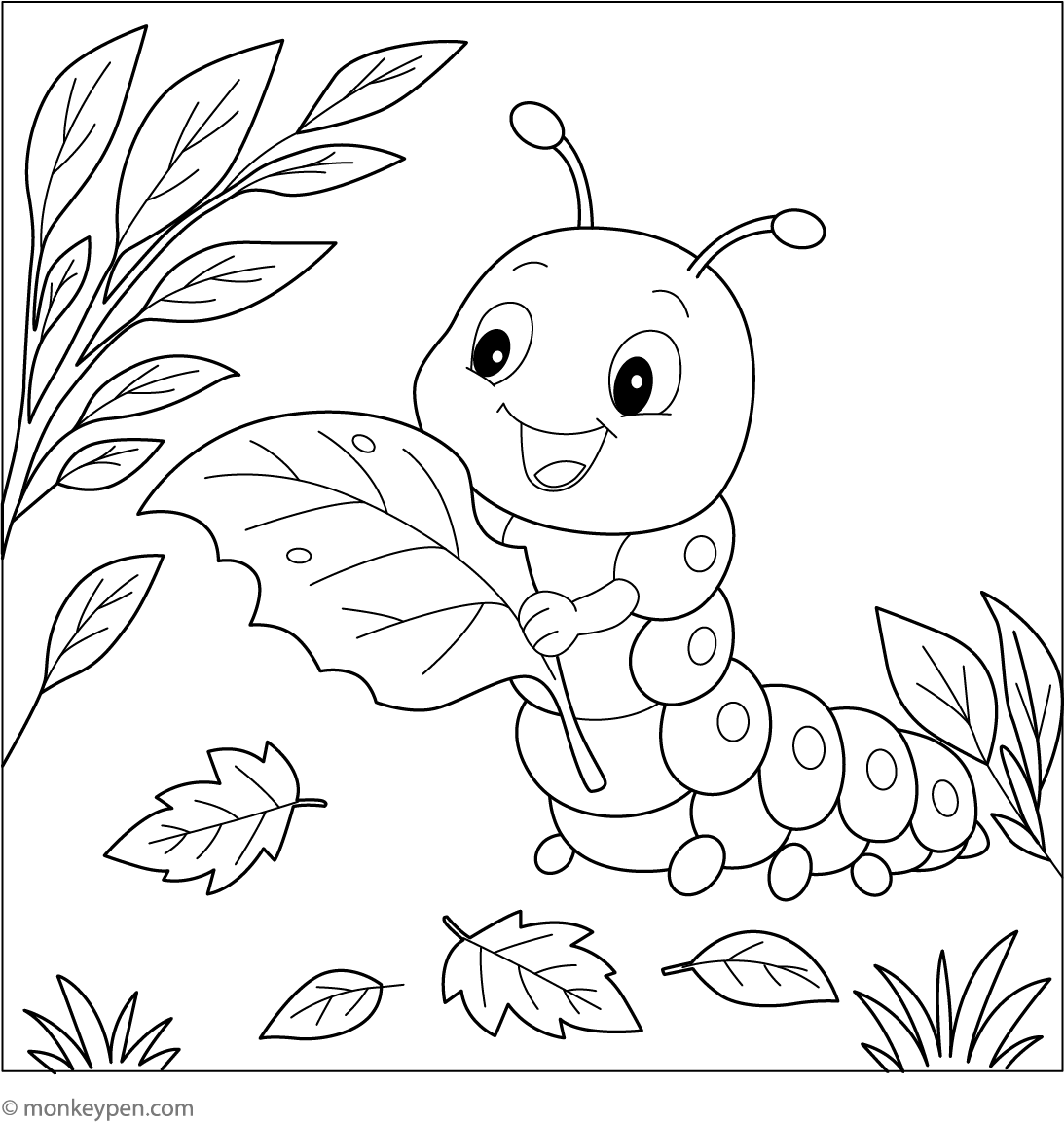 It provides an opportunity to learn about caterpillars’ role in nature and their transformation into butterflies. The clear lines and cute expression make it an accessible and enjoyable activity for young artists, blending education with creative fun.