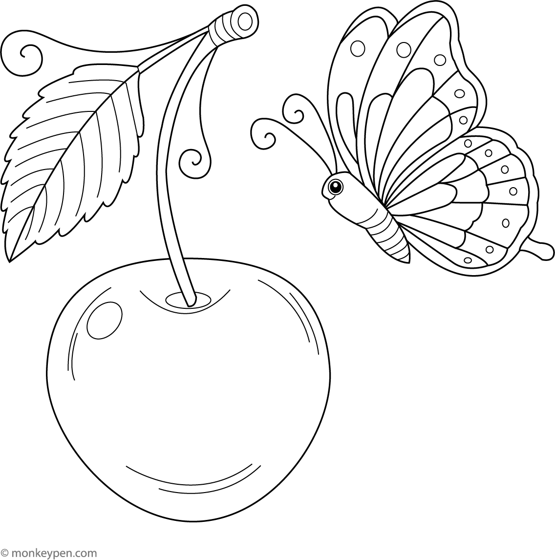 This charming colouring page features cherries hanging from a stem alongside a delicate butterfly nearby. Children can use vibrant reds, fresh greens, and bright or patterned shades for the butterfly. It encourages creativity, focus, and an appreciation for nature’s beauty. Combining fruit and wildlife elements, the scene offers an engaging opportunity for kids to explore food and fauna themes within a single printable activity. Suitable for classroom projects, creative exercises, or at-home entertainment, this page provides a peaceful and inspiring colouring experience.