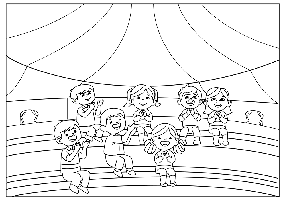 Bring the Circus Audience to life with your colors, as they cheer and clap in awe and excitement. Click here to view all our Coloring Pages For Kids It is illegal to use this coloring page artworks for commercial without giving us credit by linking to our website www.monkeypen.com Please share our coloring pages with your friends and family to support our mission. Thank you