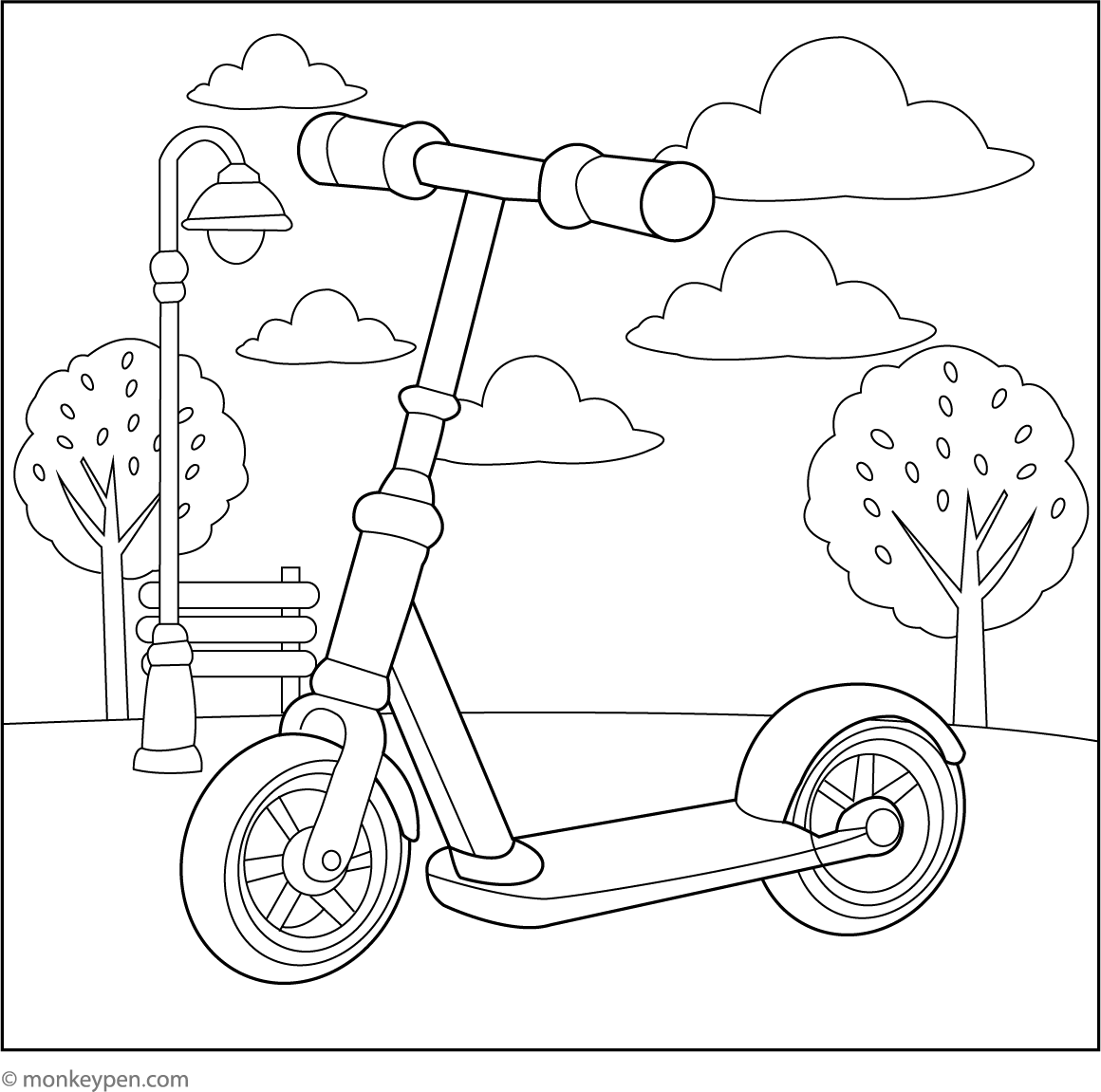 Classic Kick Scooter with Big Wheels | Free Coloring Pages