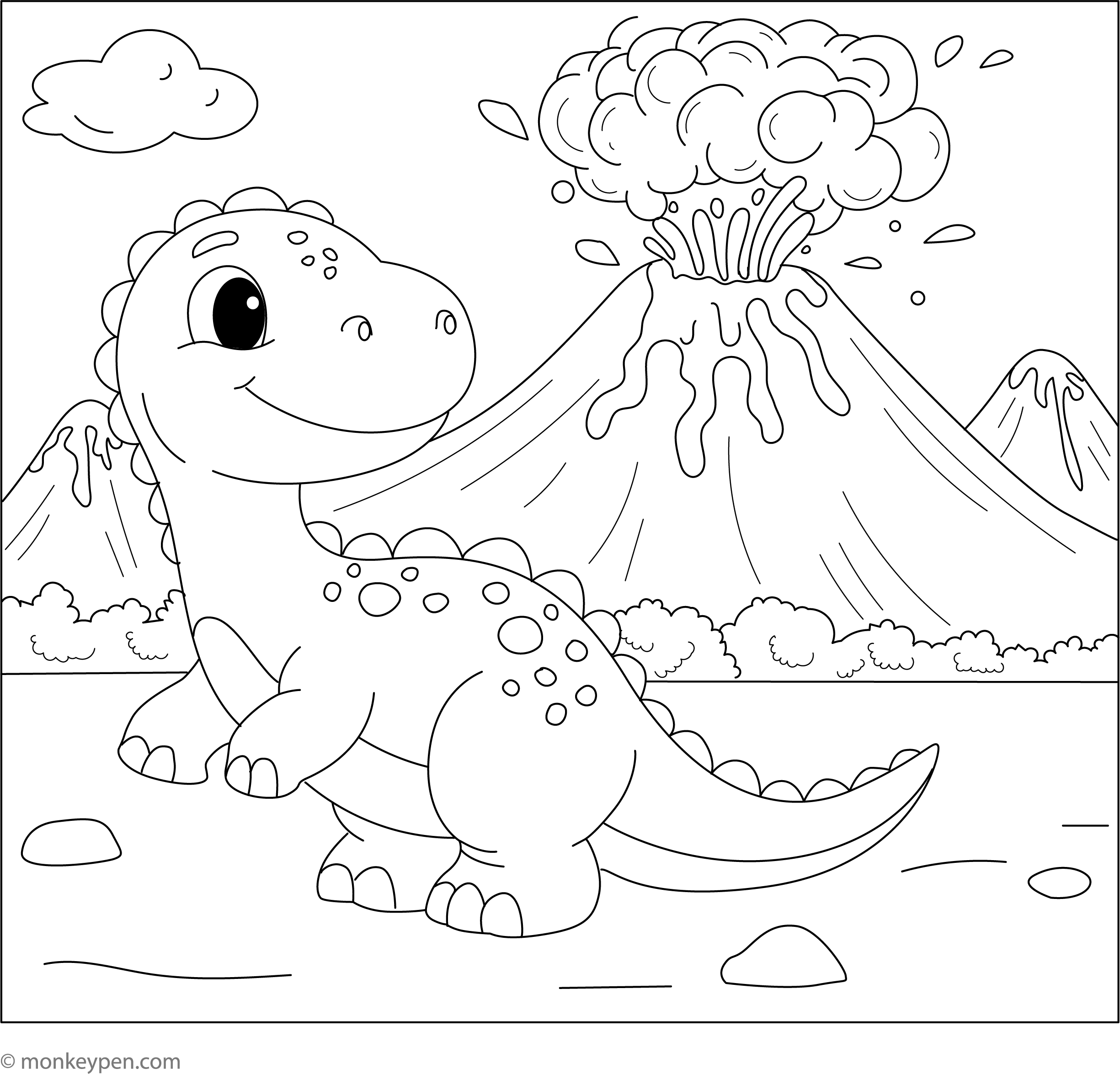 Dinosaur and Volcano Eruption | Free Coloring Pages