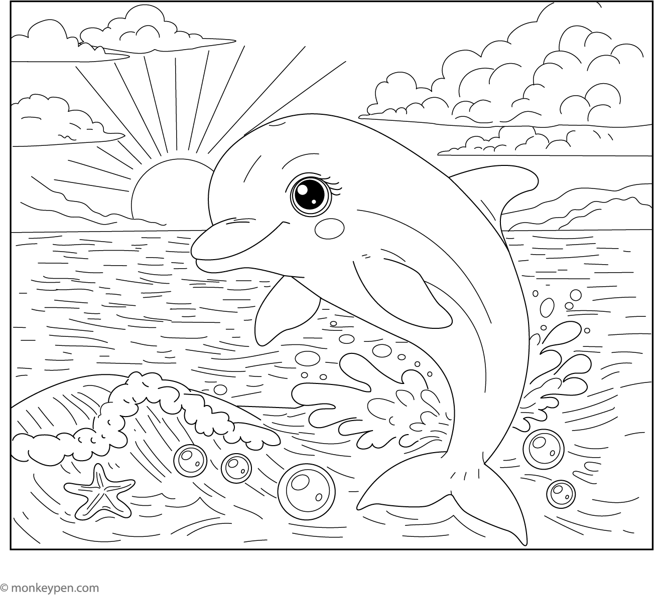 Dolphin at Sunset | Free Coloring Pages
