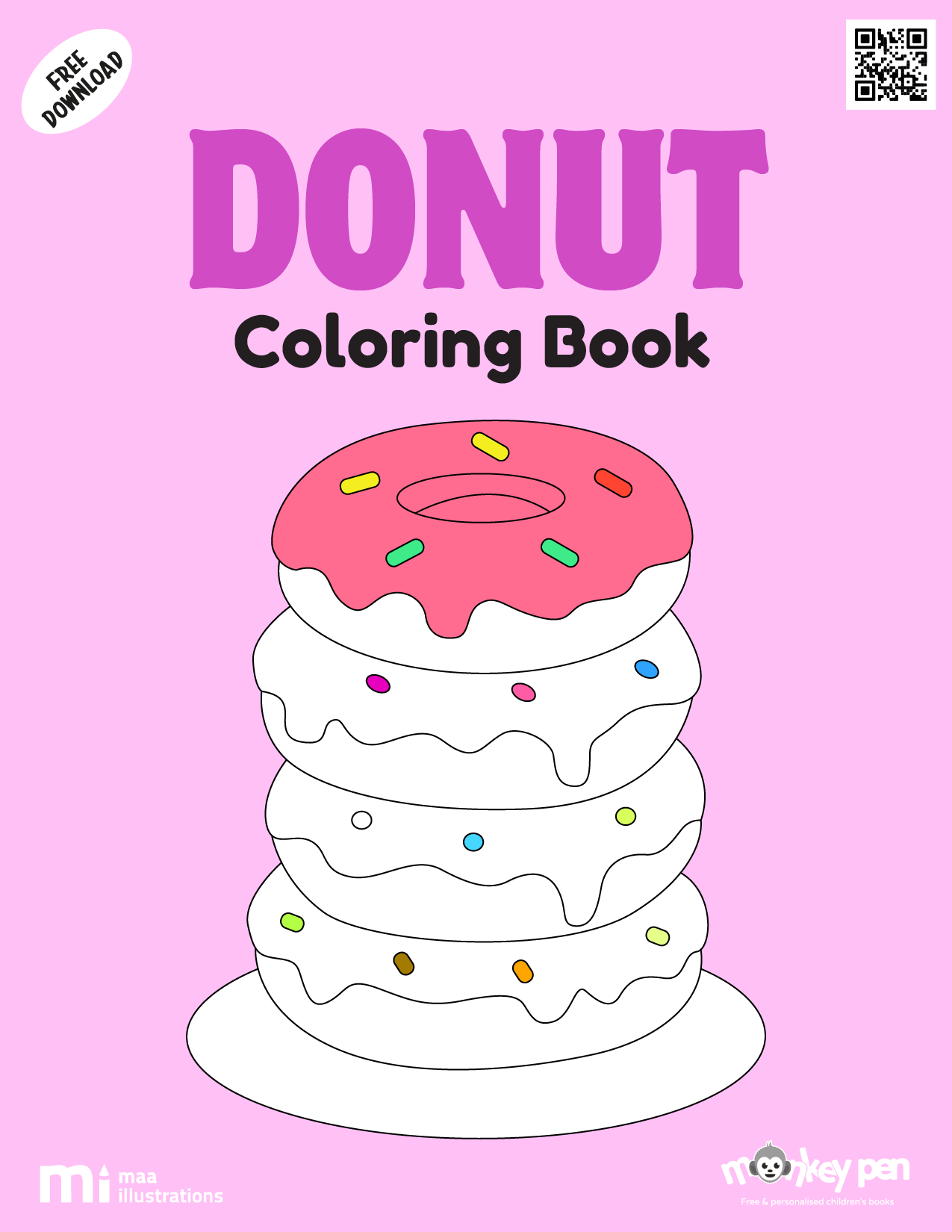 Sprinkle your way into a world where colors meet delicious treats! This donut coloring book is crafted especially for kids who like creativity, play and delicious-looking art.