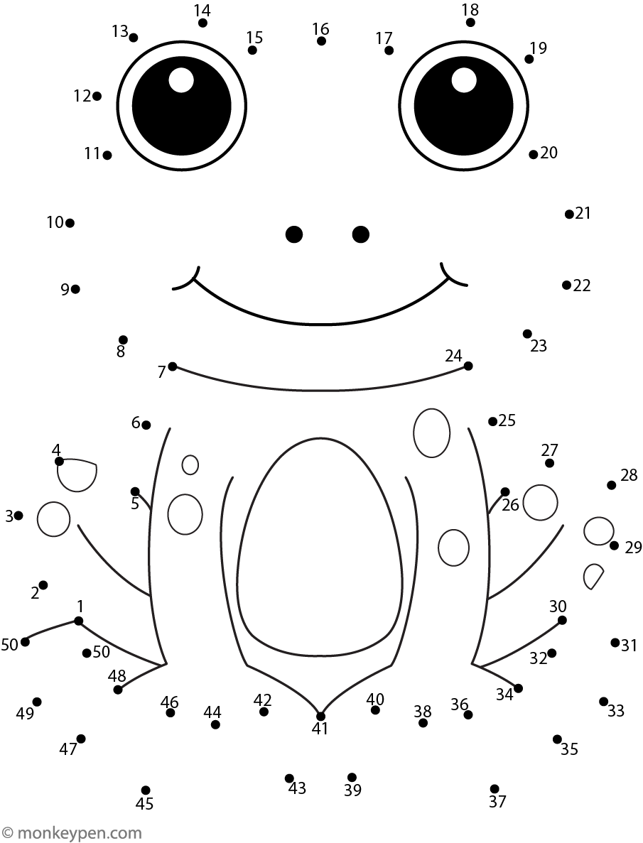 This frog dot-to-dot worksheet offers a lively learning experience. Connecting the numbered dots reveals a cartoon frog with large eyes and a cheerful smile. After completion, children are encouraged to color it in green, yellow, or bright hues of their choice. This activity enhances number sequencing, focus, and fine motor skills while exploring pond life. Ideal for classroom lessons, spring themes, or at-home activities, this worksheet combines educational content with vibrant art.