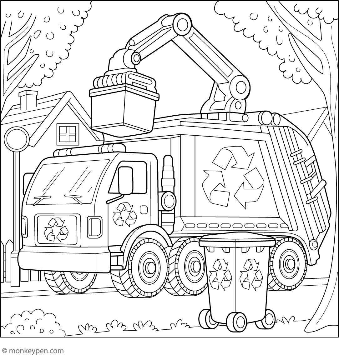 Garbage Truck with Recycling | Free Coloring Pages