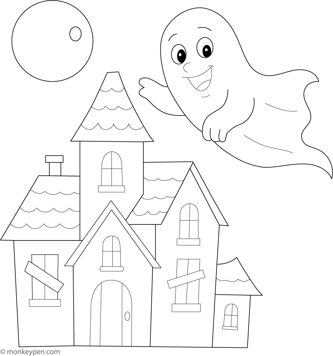 Ghost Flying Above The Haunted House | Free Coloring Page