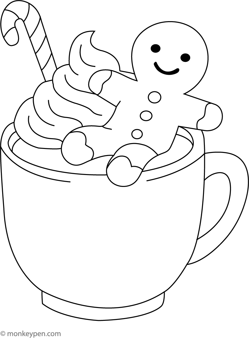 Gingerbread Man in a Hot Cocoa Cup | Free Coloring Pages