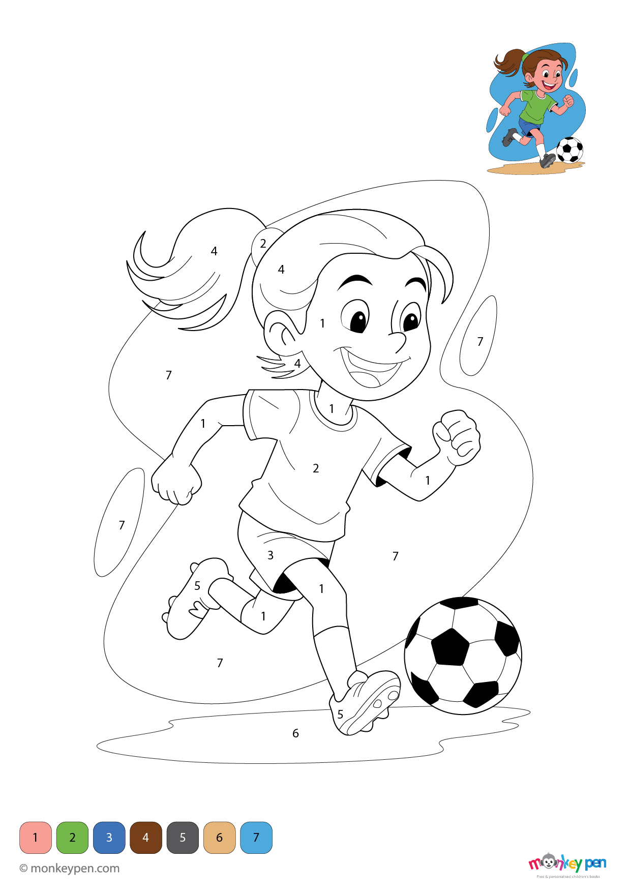 Girl Playing Football Color by Number – Sports Activity Download