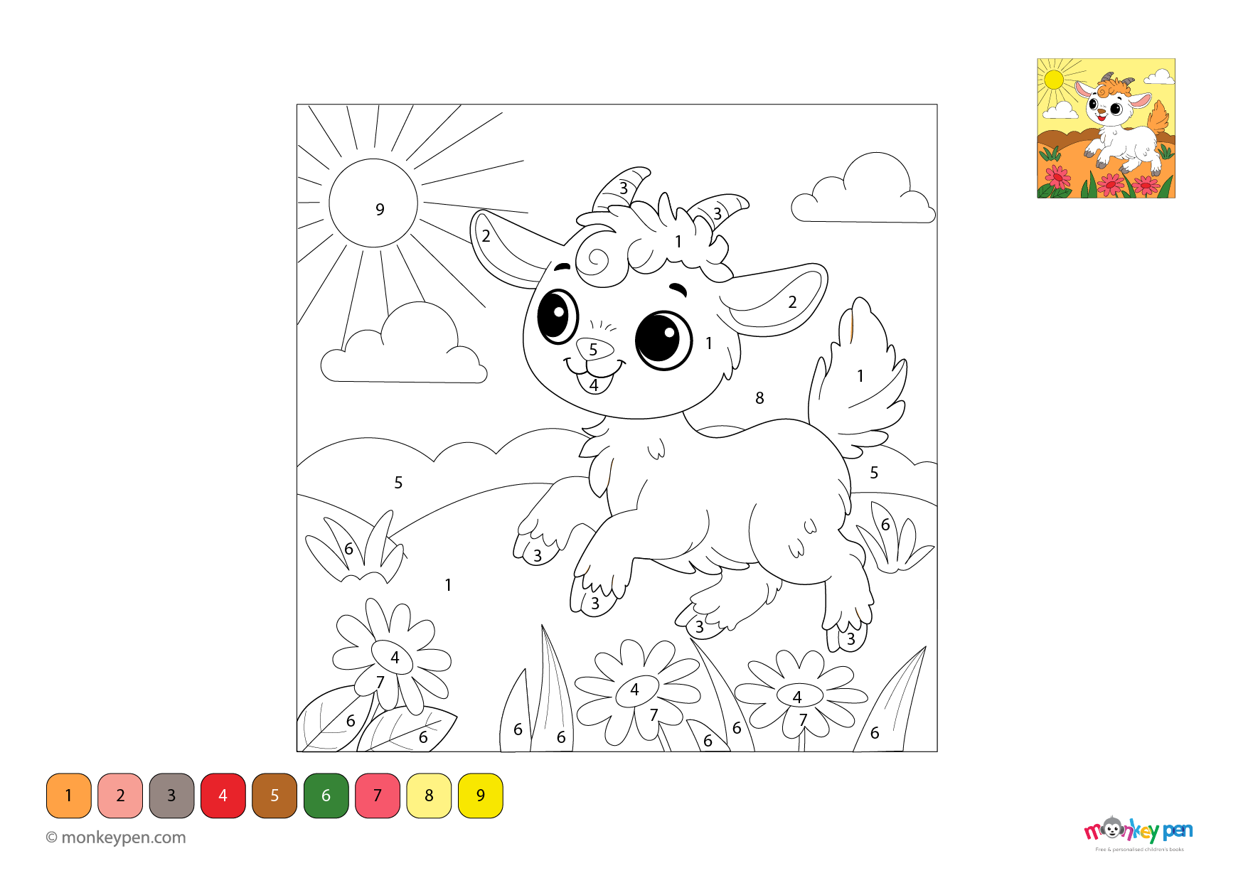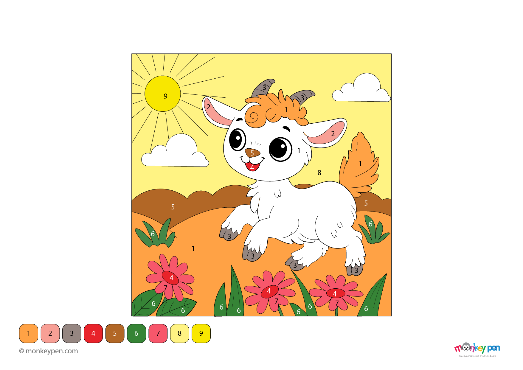 Goat Playing in Meadows Color by Number – Free Farm Fun Download