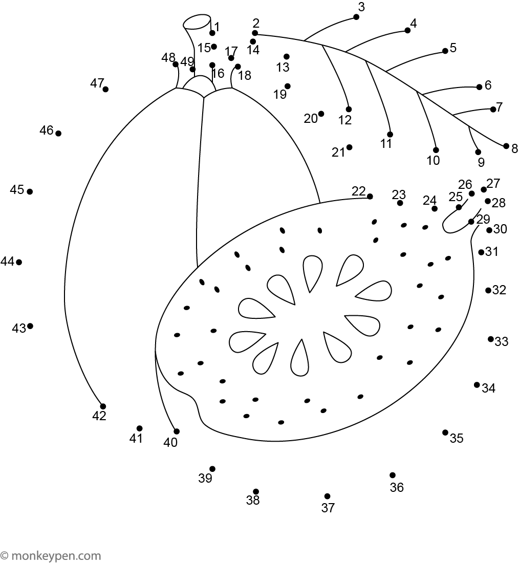 After connecting all the dots, children can color their guava in greens, pinks, or imaginative hues. This engaging worksheet promotes number sequencing, focus, and creativity while teaching about healthy foods. Explore more fun and educational fruit-themed pages in our join the dot worksheet collection ideal for classroom nutrition lessons or creative at-home learning.