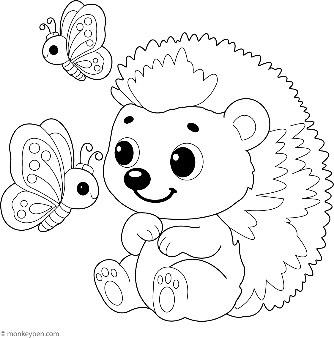 This charming colouring page features a curious hedgehog gazing up at a delicate butterflies that’s fluttering close by. Kids can use greys or browns for the hedgehog, and bright yellows, blues, or purples for the butterfly, plus greens for the grass. This free printable page is perfect for encouraging storytelling and teaches kids about animal friendships in nature while working on their focus and creativity.