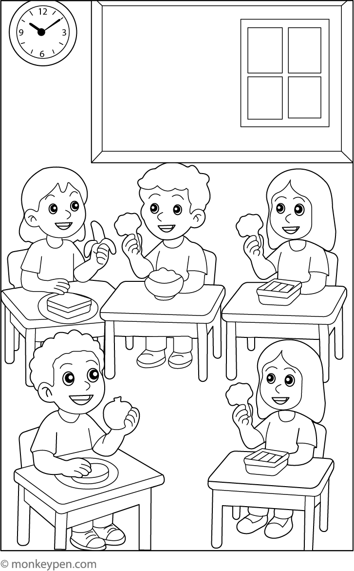 Kids Having Healthy Lunch at school | Free Coloring Pages