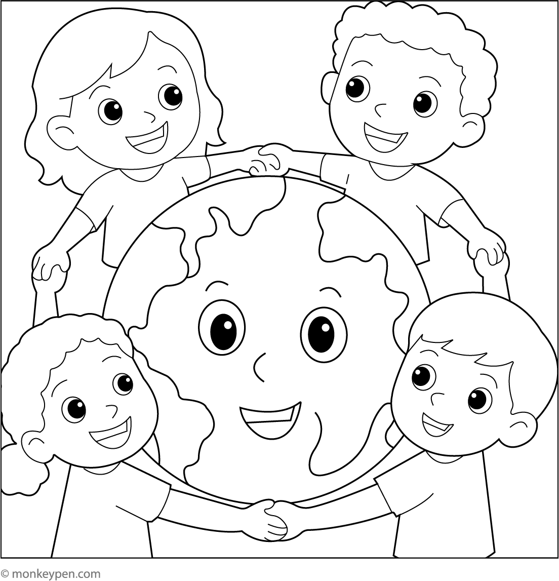 Kids Holding Hands Around Earth | Free Coloring Pages