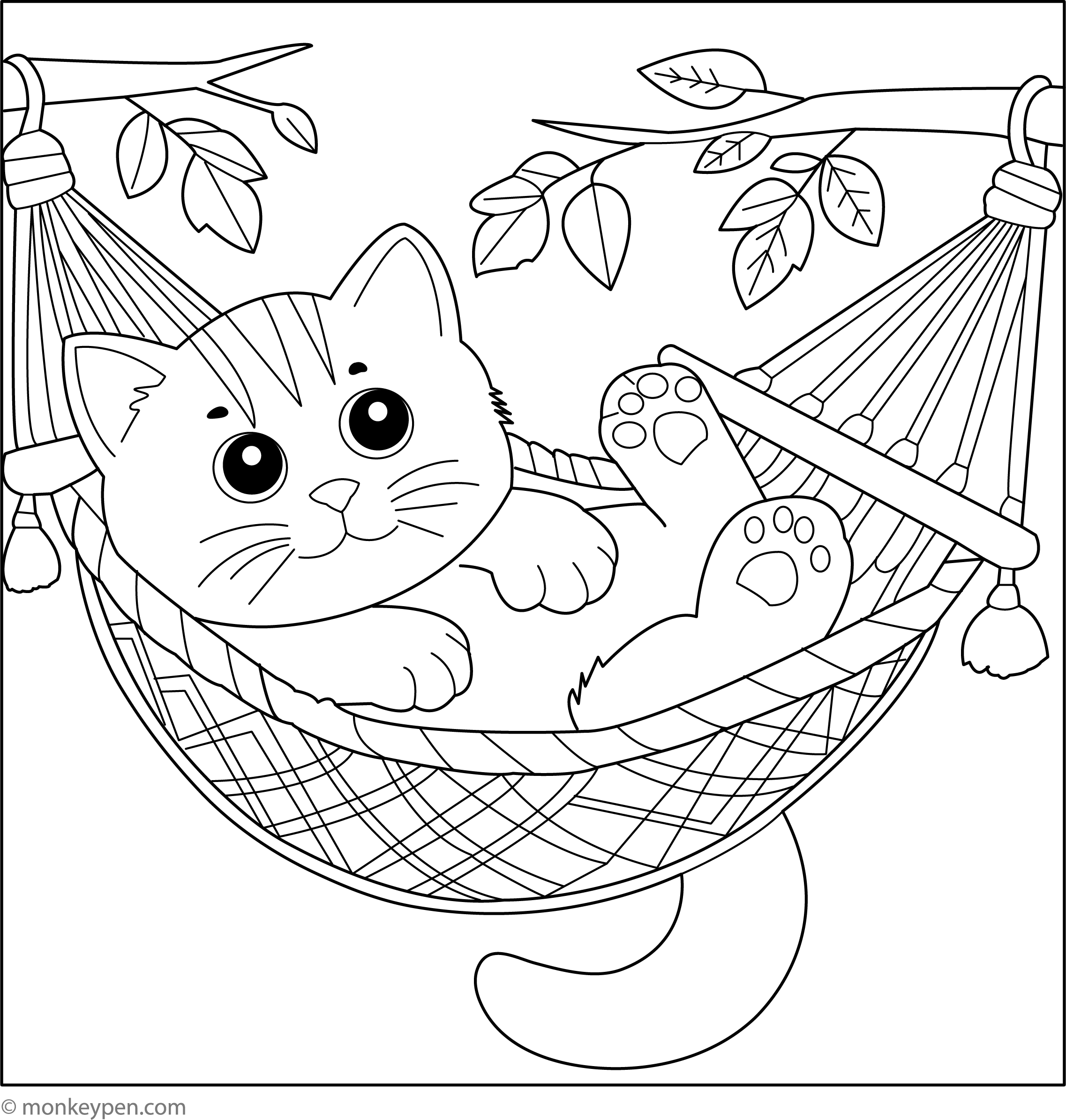 Kitten in Hammock | Free Coloring Pages