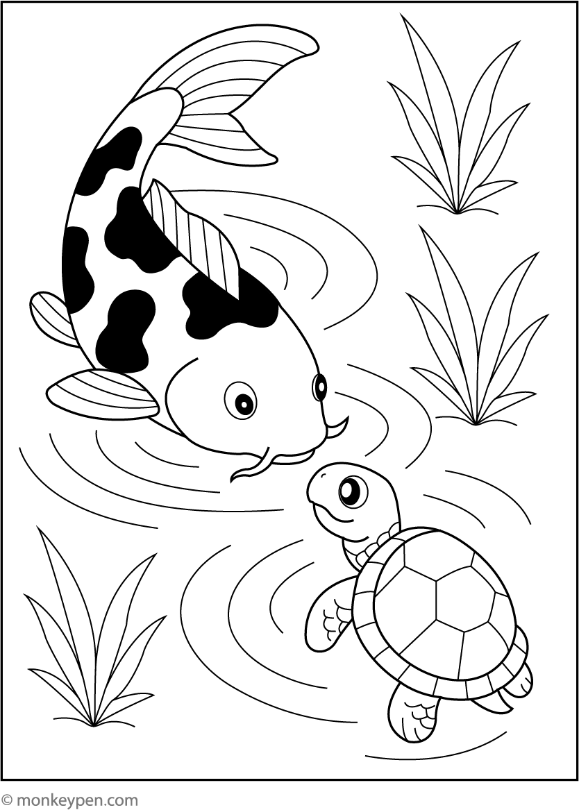 Koi Fish and the Curious Turtle | Free Coloring Pages