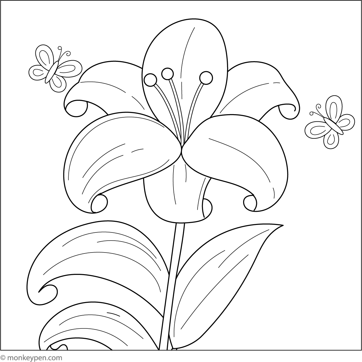 This engaging coloring page depicts a single lily with broad petals and long leaves, created to facilitate easy coloring and artistic exploration. The clean outlines are ideal for young learners to practice control and color recognition. As children choose shades of pink, yellow, or white, they will gain a better understanding of floral beauty while engaging in a calming creative activity. It serves as a valuable resource to promote focus and relaxation through art.