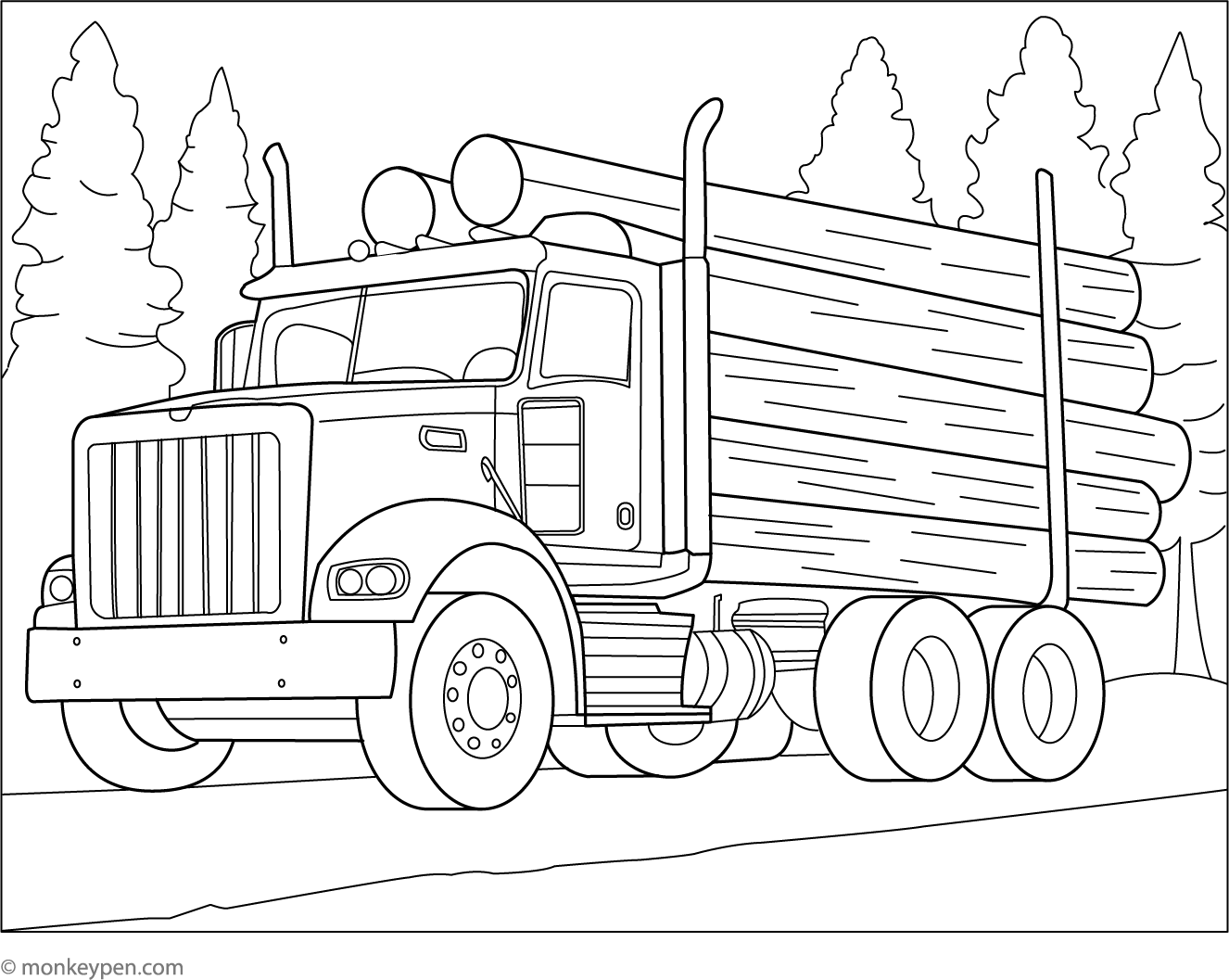 Logging Truck Carrying Giant Tree Logs | Free Coloring Pages