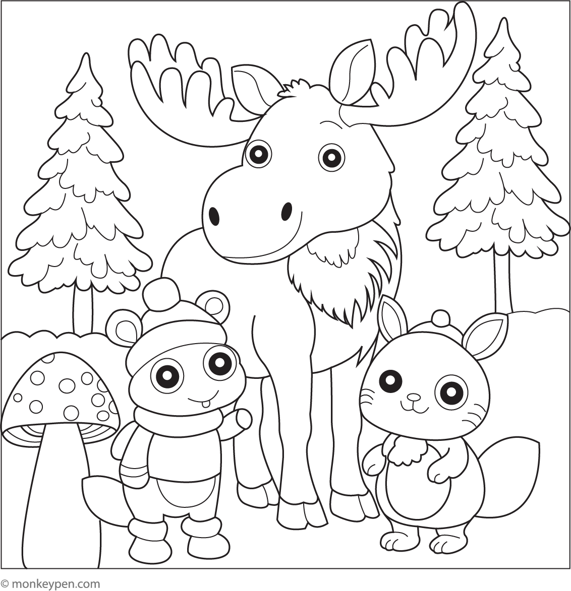 Moose and Forest Friends | Free Coloring Pages