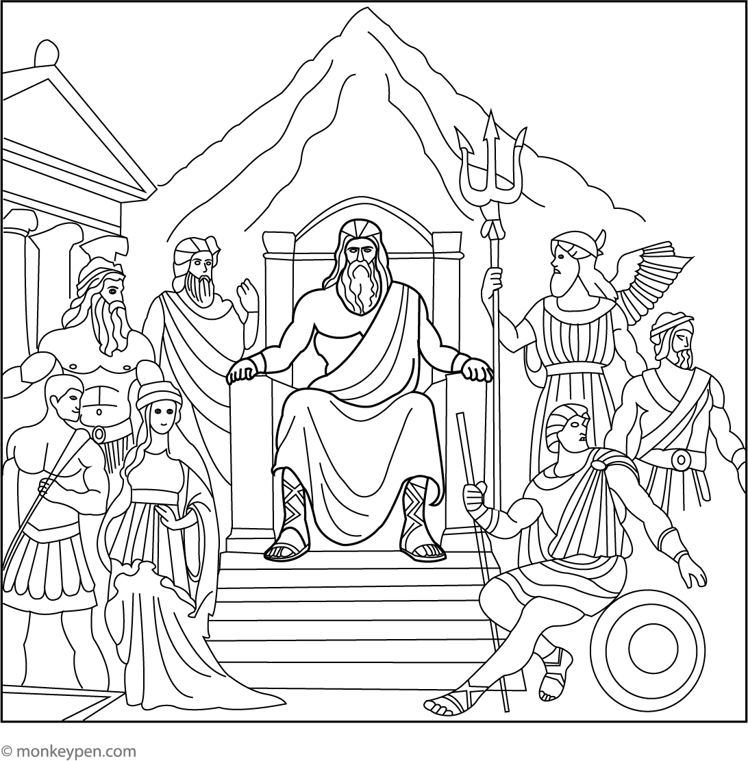 Mount Olympus and the Gods | Free Coloring Pages