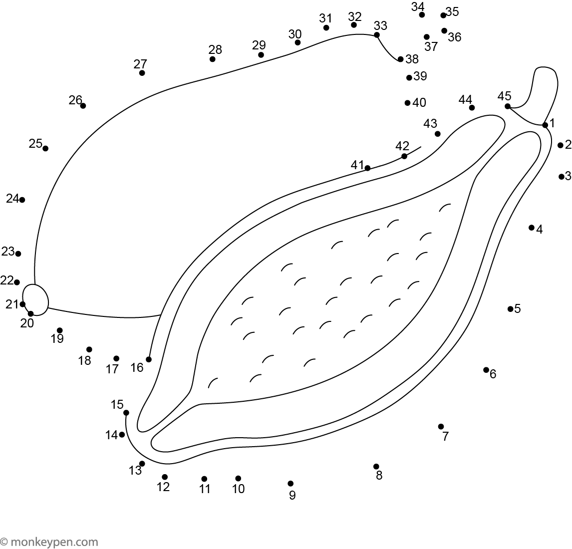 This tropical papaya dot-to-dot worksheet offers a juicy, fun learning experience. When connected, a cartoon depiction of a papaya with seeds and leafy top is revealed. Kids can then color it in orange, green, or creative fruity shades. The activity helps develop number sequencing, focus, and creativity, while introducing children to healthy tropical fruits. Perfect for summer lessons, classroom enrichment, or at-home learning, this worksheet combines education with vibrant, fruity fun.