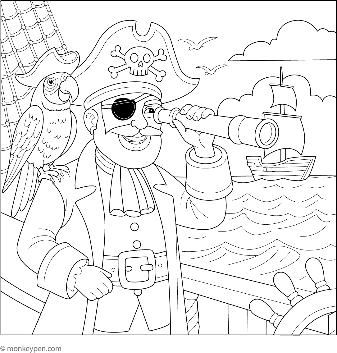 Pirate Captain with a Spyglass | Free Coloring Pages