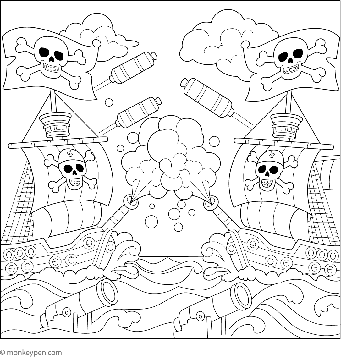 Pirate Ship Battle with Cannons | Free Coloring Pages