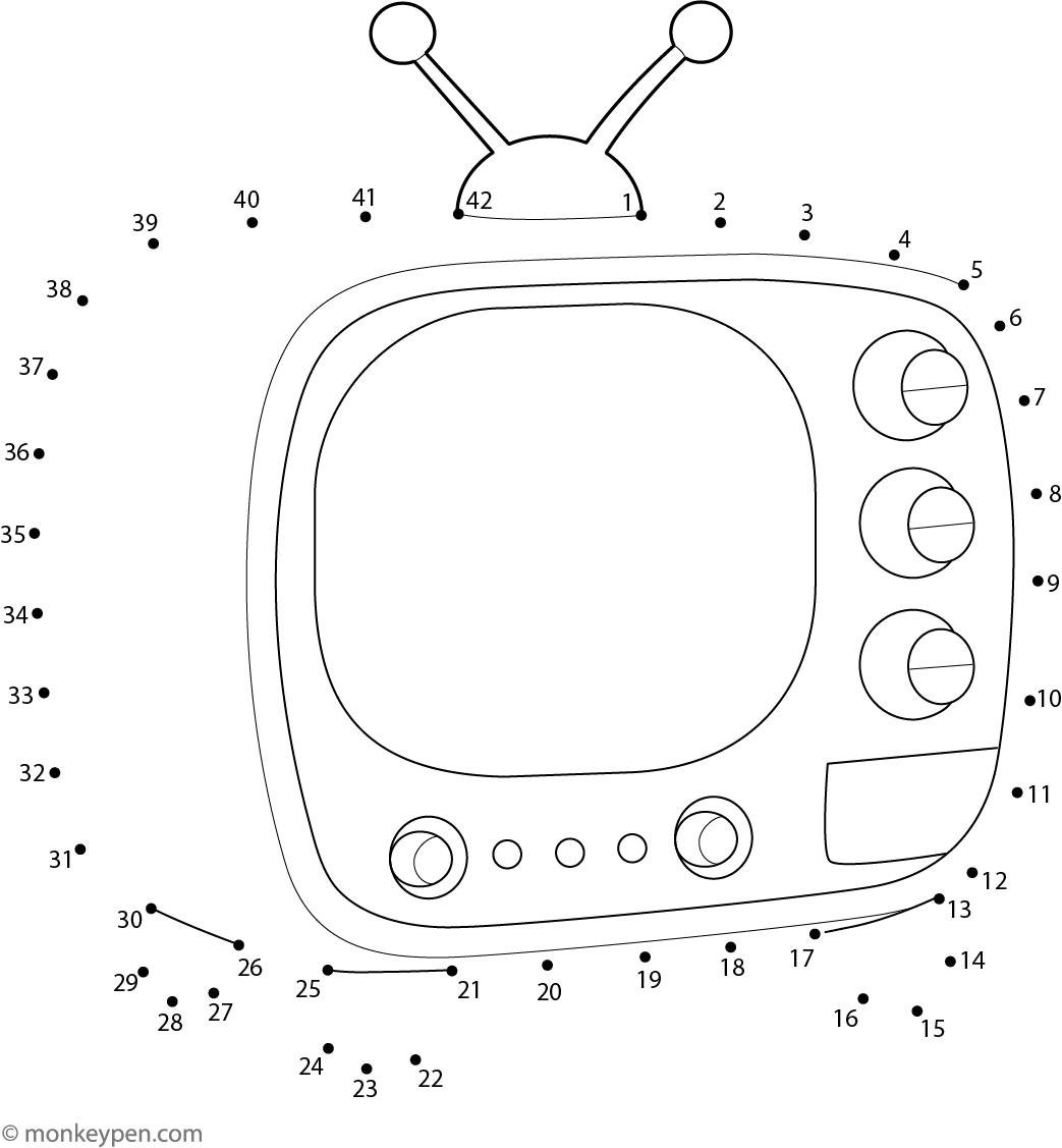 Television – Dot-to-Dot Puzzle for Kids with Creative Colouring