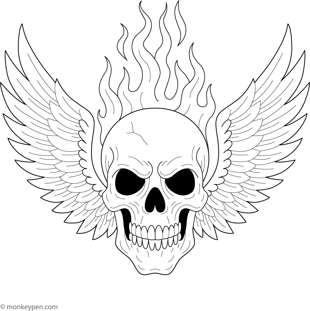 Winged Skull with Flames Tattoo | Free Coloring Pages