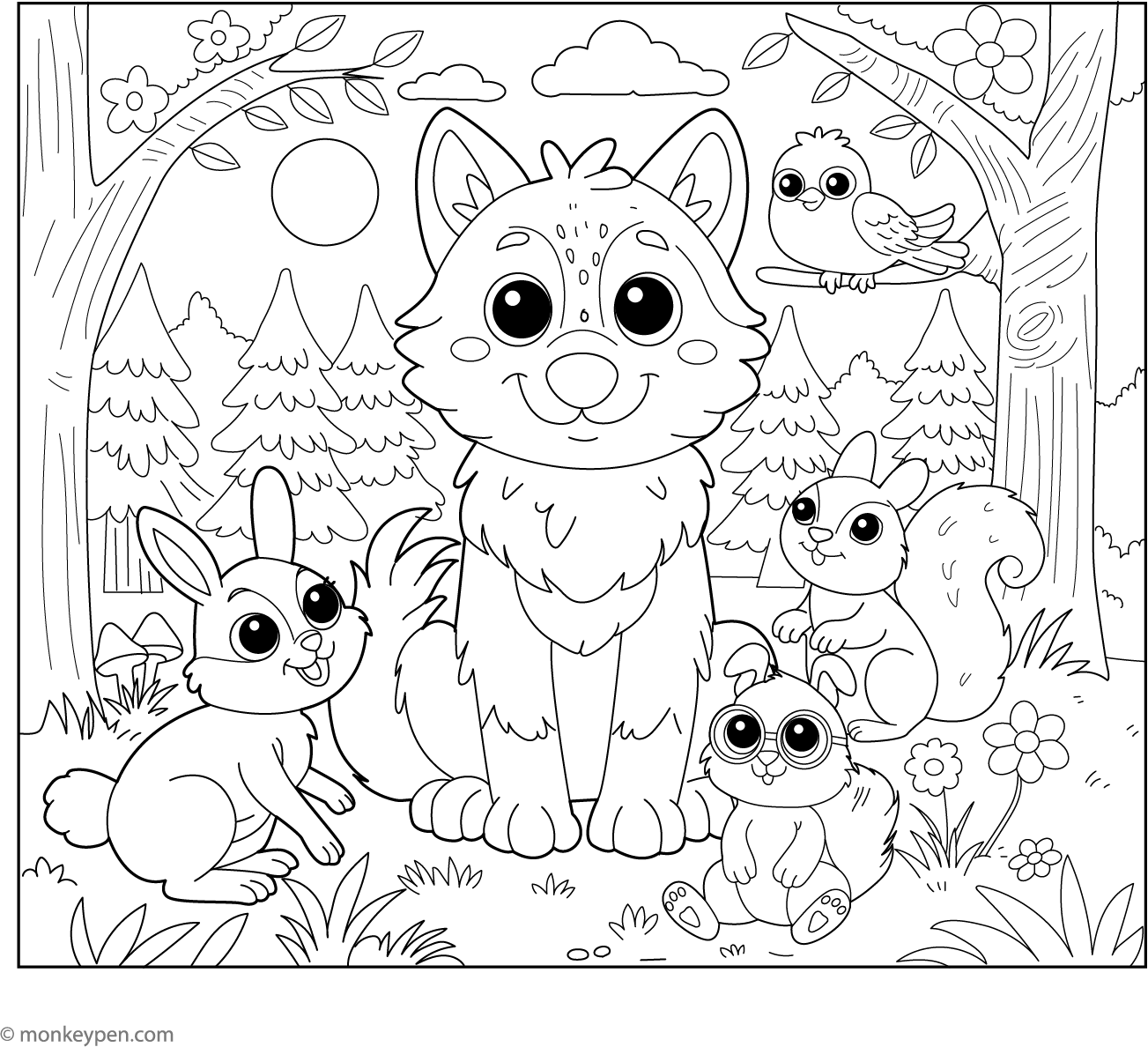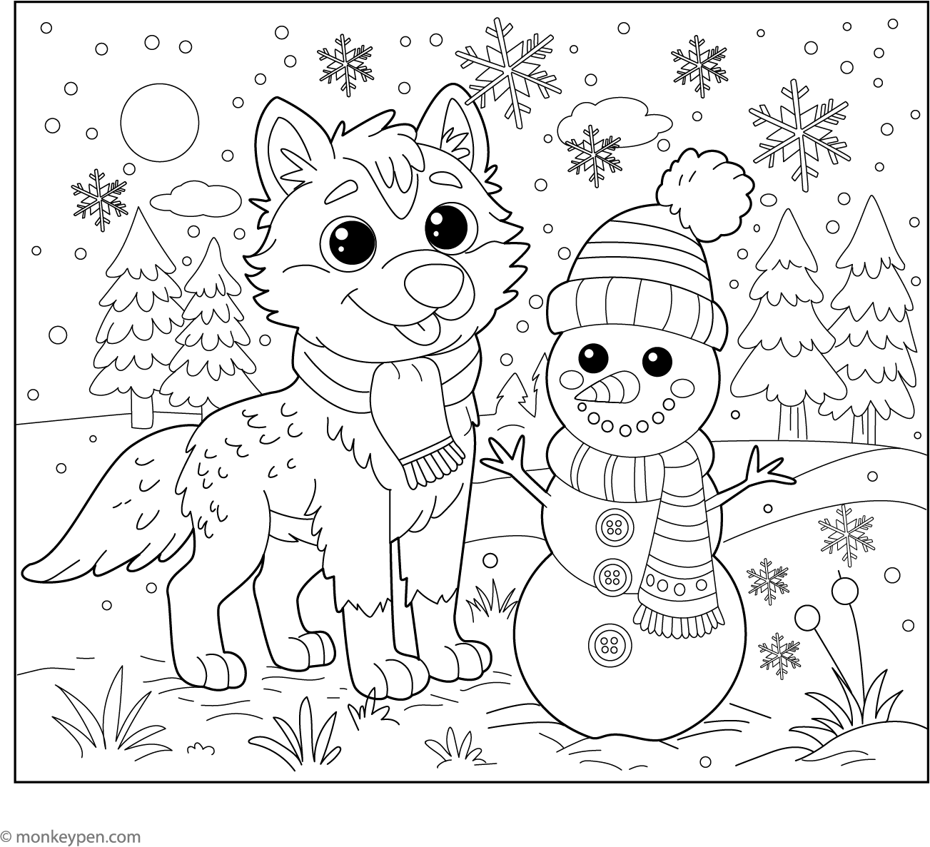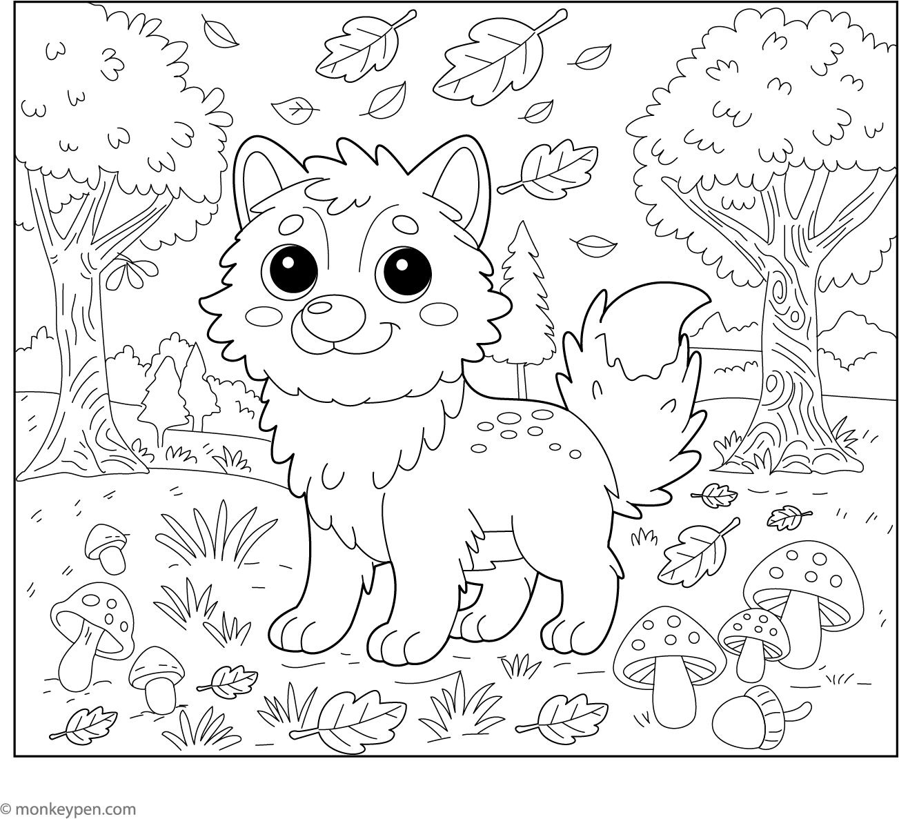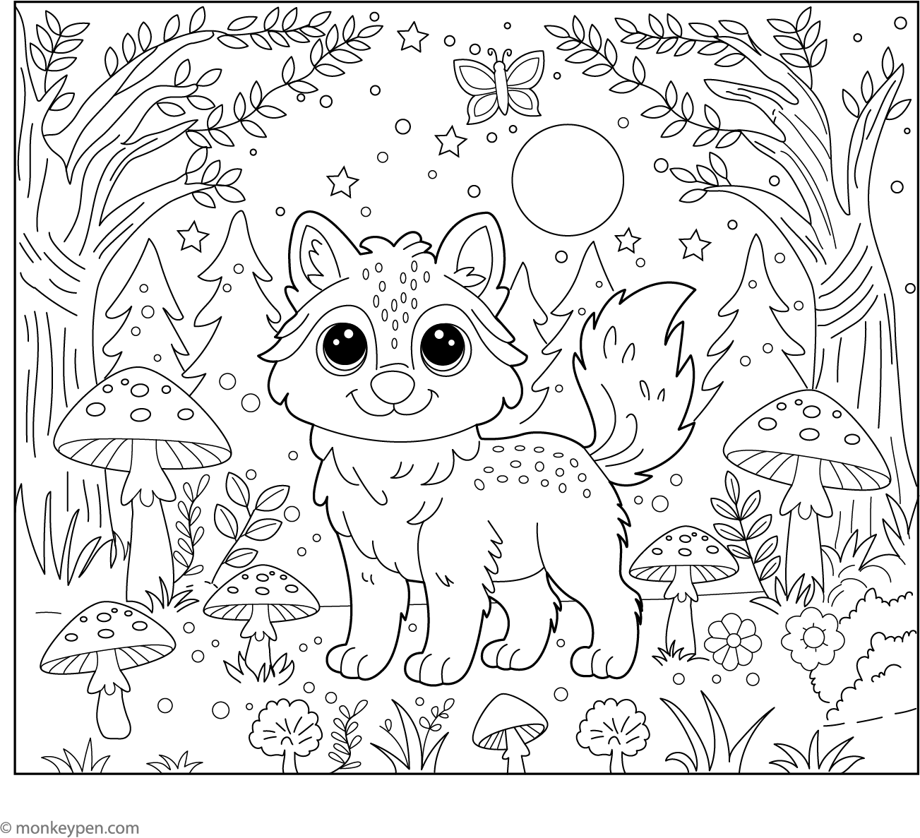 Meet the smart, powerful and fascinating animals through Monkey Pen’s printable wolf coloring book. Designed for little kids and curious minds, these printable wolf coloring pages feature wolfs in forests, mountains and snowy landscapes.
