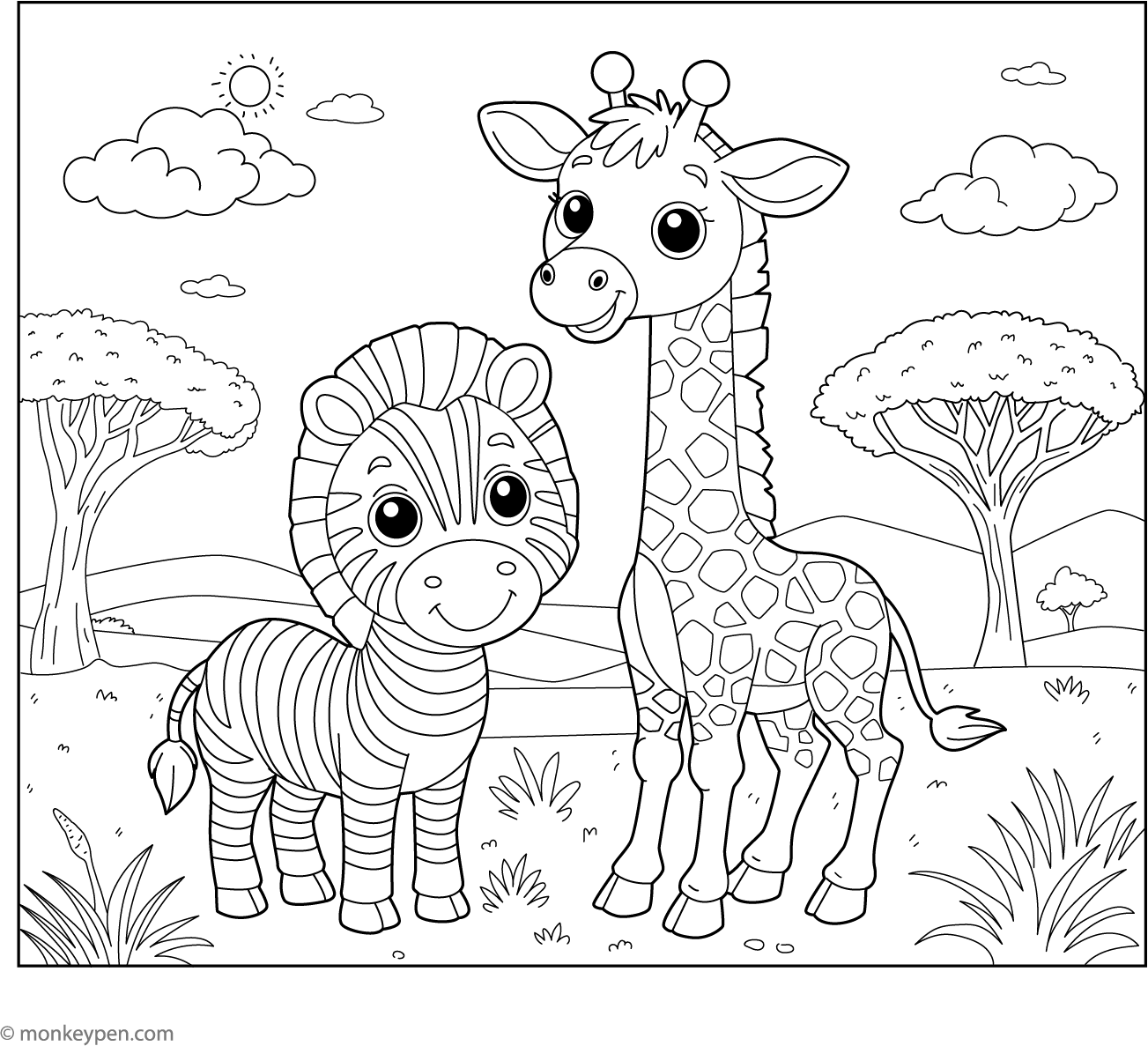 🦒 Giraffe Coloring Book – Tall, gentle safari animals with fun patterns to color.